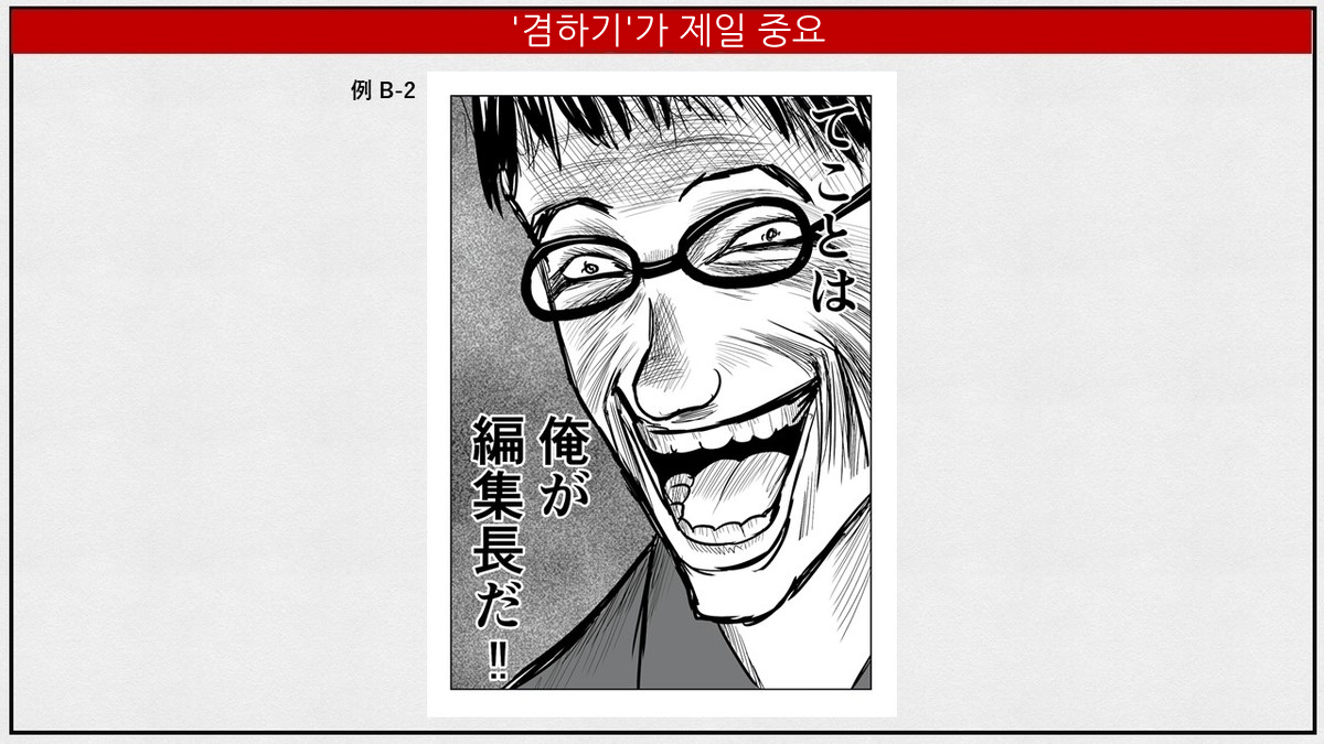 이런 예는 다른곳에도 많습니다. 하면 할수록 만화는 더욱 윤이 날 것입니다.